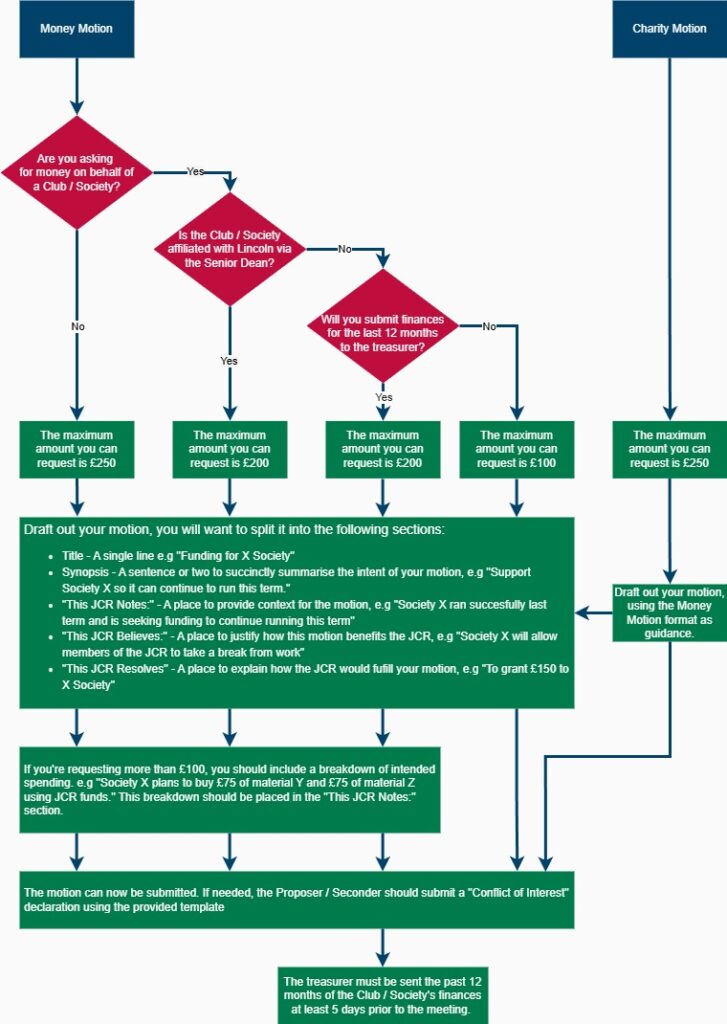 To clarify the procedure we’ve created this flowchart here to help JCR members understand how they should classify their motions, and whether there are particular rules and policies they need to follow.